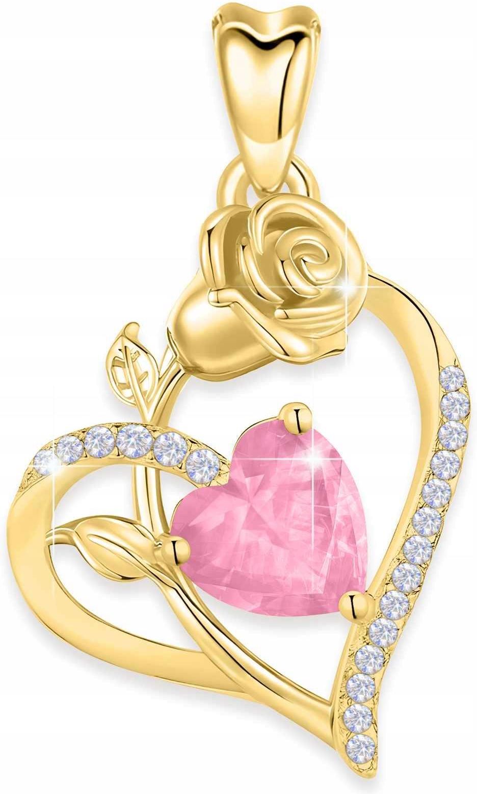 Larezo Złota Zawieszka Do Łańcuszka Różowe Kryształowe Serce Z Różą Srebro 925 Czchów