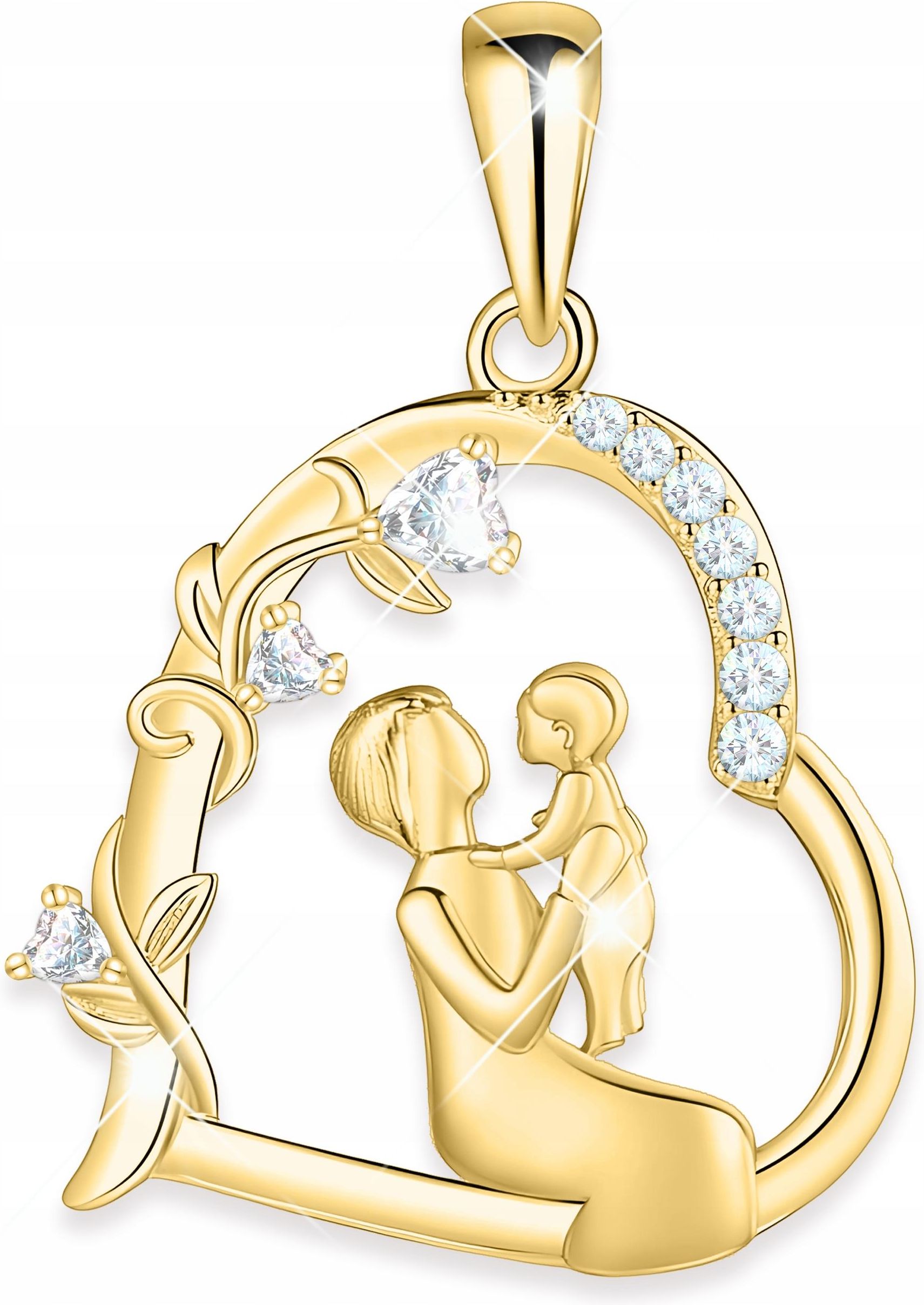 Larezo Złota Zawieszka Do Łańcuszka Serce Mama Z Córką Dzieckiem Srebro 925 Czchów