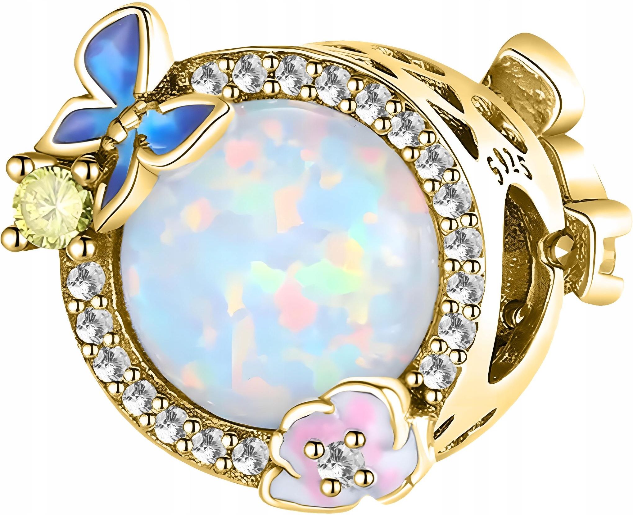 Larezo Złoty Charms Opalizujący z Motylami Tęczowy z Motylkami Cyrkoniami Kółko Czchów