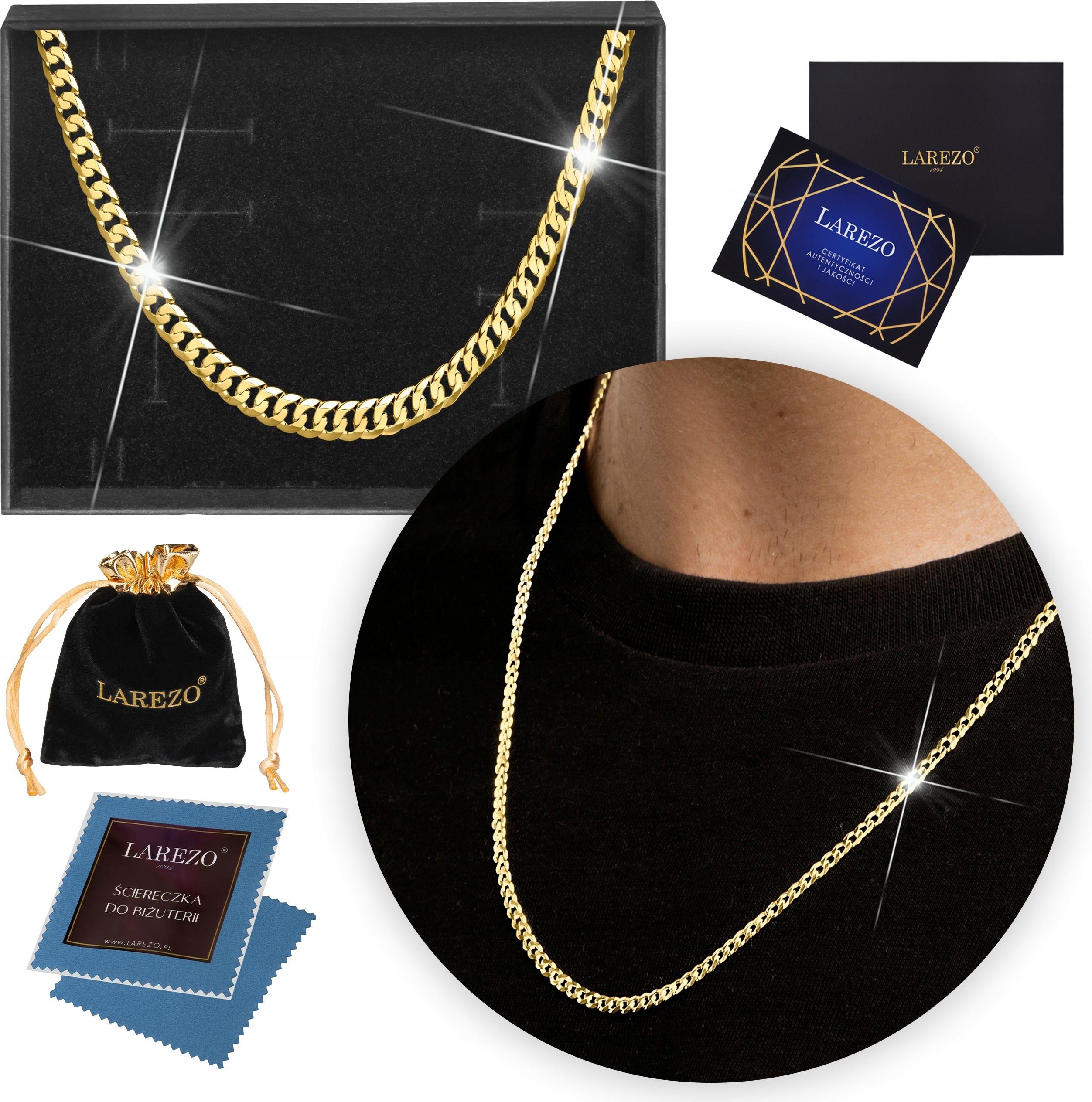 Larezo Złoty Łańcuszek Męski 585 Splot Pancerka 55cm Pełny Włoski 3,2mm Srebro 925 Czchów