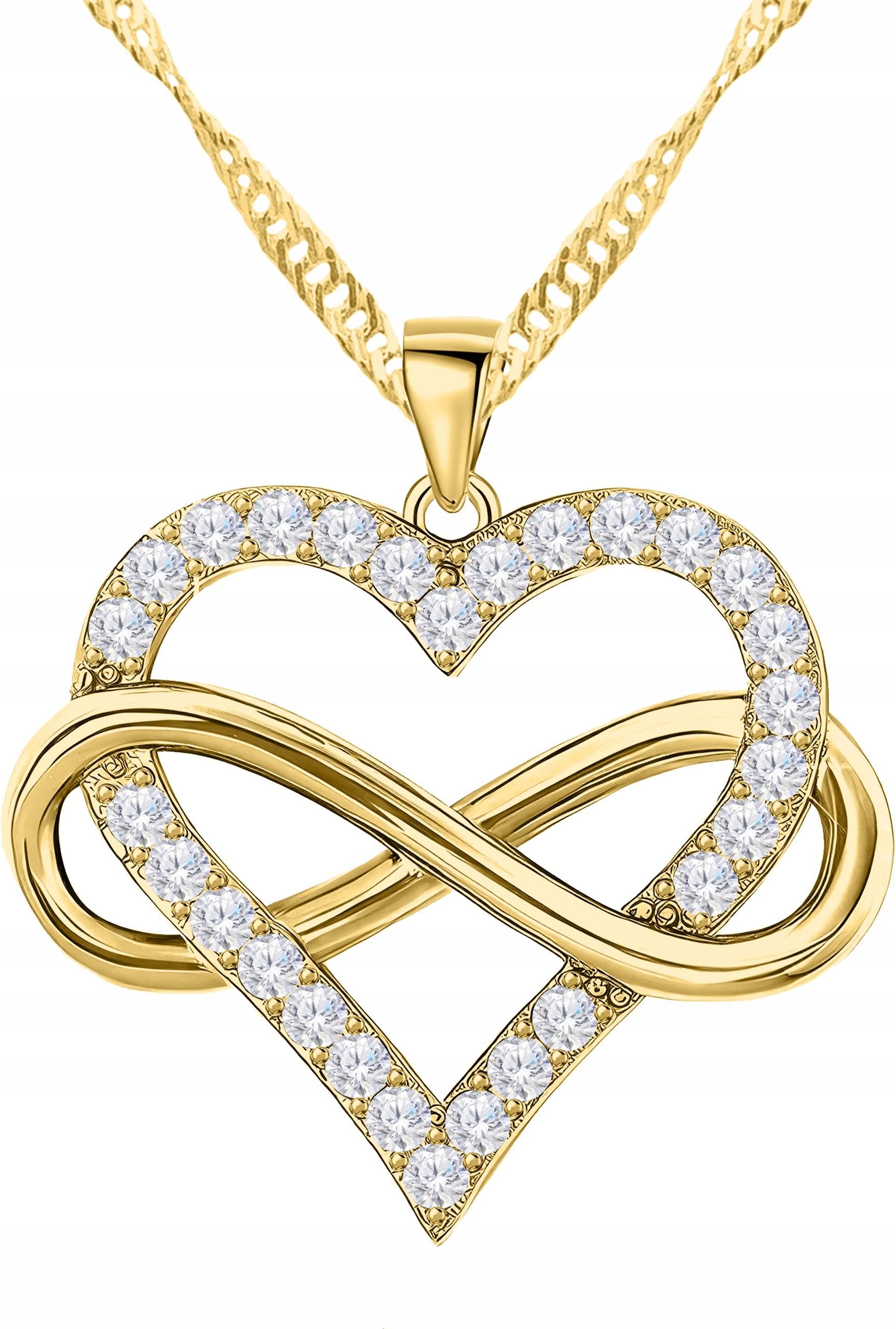 Larezo Złoty Naszyjnik 925 Serce Nieskończoność Wieczna Miłość Love Pozłacany 585 Czchów