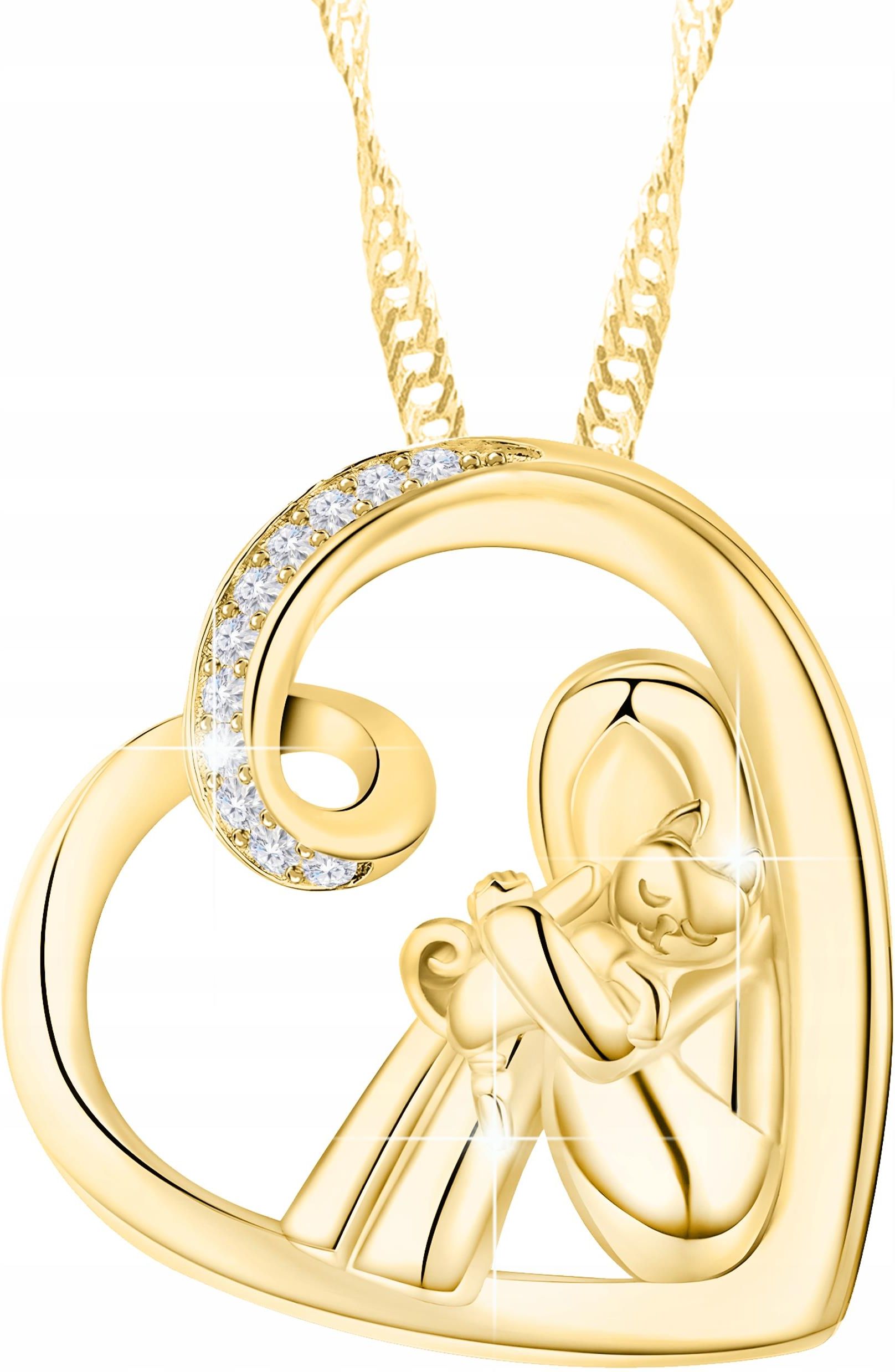 Larezo Złoty Naszyjnik Serce Kot 925 Serduszko bff Dziewczyna Kotek Pozłacany 585 Czchów