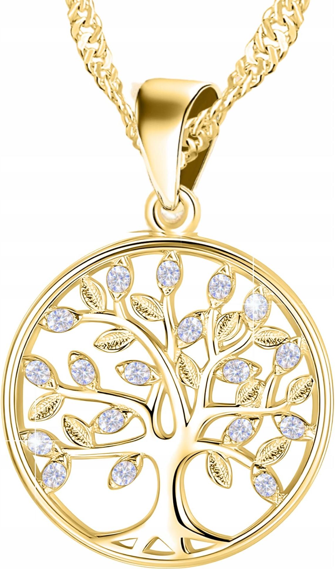 Larezo Złoty Naszyjnik z Drzewkiem i Cyrkoniami Drzewo Drzewko Życia Pozłacany 585 Czchów