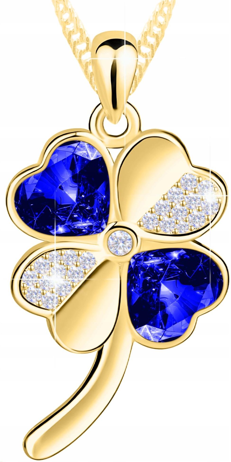 Larezo Złoty Naszyjnik z Koniczynką Srebro 925 Kryształowe Dwa Serca Pozłacany 585 Czchów
