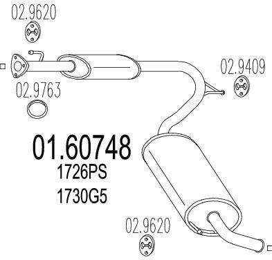 Tłumik końcowy MTS 01.60748 (01.60748) (ERNST: 515092+515085 PEUGEOT: 1730H1 WALKER: NO.CAT. PEUGEOT: 1730G5 IMASAF: 358307 PEUGEOT: 1726PS BOSAL: 283-581 )