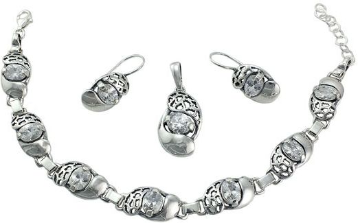 NorbiSrebro Piękny Srebrny Oksydowany Komplet z Cyrkoniami Warto B-6 Czchów