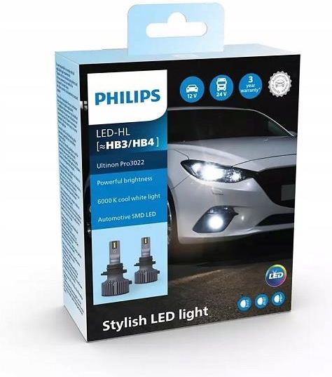 Philips żarówki LED HB3/BH4 Ultinon PRO3021 Żarówki samochodowe LED firmy Philips* zostały zaprojektowane tak, aby zapewniać wyjątkową wartość, komfortowe oświetlenie i niezawodne działanie. Zbudowane z myślą o długiej żywotności i łatwej instalacji, te żarówki są idealnym uzupełnieniem technologii halogenowej do LED Jakość, chłodne białe światło Aby uzyskać nowoczesny, chłodny, biały wygląd, ulepsz swoje reflektory samochodowe za pomocą żarówek LED Philips Ultinon Pro3021. Te doskonałe żarówki, wyposażone w wydajne chipy LED o temperaturze barwowej 6000 kelwinów, zostały zaprojektowane z myślą o maksymalnym komforcie jazdy. Szybciej dostrzegaj przeszkody i jedź z większą pewnością, nie oślepiając innych użytkowników drogi. Uzyskaj zarówno wydajność, jak i styl dzięki naszym żarówkom LED Philips Ultinon Pro3021. Żarówki o długiej żywotności Właściwe światło LED to wysokiej jakości światło, które trwa dłużej. Żarówki Philips Ultinon Pro3021 mają trwałą konstrukcję z wysokowydajnym radiatorem, który odprowadza ciepło z dala od najważniejszych elementów światła. Oferują żywotność do 2000 godzin, która może być nawet czterokrotnie dłuższa niż żarówki halogenowe, które zastępują**. Łatwa instalacja Zoptymalizowany rozmiar żarówki LED ma kluczowe znaczenie, ponieważ niektóre elementy optyczne mogą być bardzo małe. Podczas gdy inne rozwiązania LED do modernizacji dostępne na rynku mogą być wyposażone w zewnętrzną skrzynkę sterownika CANBUS, żarówki Philips Ultinon Pro3021 LED oferuje zintegrowane sterowniki, dzięki czemu instalacja jest szybsza i bezproblemowa. Kompaktowa konstrukcja pasuje do szerszej gamy modeli samochodów i może być z łatwością instalowana przez wyspecjalizowanych mechaników. Dokonaj zmiany, której potrzebujesz! Postępuj zgodnie z instrukcją krok po kroku tutaj*** i orientacyjną listą kompatybilności tutaj**** Lepsza widoczność Podczas gdy niektóre inne żarówki LED mogą rozczarować, zwykle dlatego, że ich deklaracje dotyczące strumienia świetlnego lub jasności mogą być niewystarczające w warunkach rzeczywistych, Philips Ultinon Pro3021 zapewnia solidną wydajność i wysoką jakość światła. Jego jednorodna wiązka zapewnia wyraźniejsze widzenie bez oślepiania innych użytkowników drogi, a wysokaluminancja zapewnia stały strumień świetlny przed samochodem. Aby zapewnić dobrą wiązkę światła , ważne jest, aby żarówki LED były prawidłowo ustawione w reflektorze. Więc nie pomijaj wyrównania - nie spiesz się i zrób to dobrze! Zaufaj marce — niezawodna jakość firmy Philips Zaawansowane technologicznie oświetlenie samochodowe Philips jest znane w branży motoryzacyjnej od ponad 100 lat. Produkty Philips Automotive Grade Quality są projektowane i opracowywane zgodnie z surowymi procesami kontroli jakości, co prowadzi do niezmiennie wysokich standardów produkcji. Dobre jakościowo chłodne białe światło Aby uzyskać efekt nowoczesnego chłodnego białego światła, wybierz żarówki LED Philips Ultinon Pro3021. Te wysokiej jakości lampy LED o temperaturze barwowej 6000 K zostały zaprojektowane z myślą o maksymalnym komforcie jazdy. Szybciej dostrzegaj przeszkody i kieruj z większą pewnością bez oślepiania innych użytkowników drogi. Żarówki Philips LED Ultinon Pro3021 zapewniają zarówno wydajność, jak i styl. Żarówki o długiej żywotności Odpowiednie światło LED to dobrej jakości źródło światła o dłuższej żywotności. Żarówki Philips Ultinon Pro3021 mają trwałą konstrukcję z wysokowydajnym radiatorem, który odprowadza ciepło z dala od najbardziej istotnych elementów oświetlenia. Zapewniają trwałość do 2000 godzin, czyli nawet czterokrotnie dłuższą niż żarówki halogenowe, które zastępują**. Łatwa instalacja Optymalny rozmiar źródła światła LED jest kluczowy, ponieważ niektóre układy optyczne mogą być bardzo małe. Podczas gdy inne dostępne na rynku rozwiązania LED retrofit mogą być wyposażone w zewnętrzny sterownik, nasze lampy LED Philips Ultinon Pro3021 firmy mają zintegrowany sterownik, dzięki czemu instalacja jest szybsza i bezproblemowa. Kompaktowa konstrukcja pasuje do szerokiej gamy modeli samochodów i dlatego lampa może być łatwo zainstalowana przez wyspecjalizowanych mechaników.. Dokonaj niezbędnych zmian! Postępuj zgodnie z instrukcjami krok po kroku zamieszczonymi tutaj*** i zapoznaj się z orientacyjną listą zgodności, która znajduje się tutaj****. Lepsza widoczność Podczas gdy niektóre inne żarówki LED mogą rozczarowywać, zazwyczaj dlatego, że ich deklarowana jasność lub liczba lumenów nie sprawdza się w warunkach rzeczywistych, Philips Ultinon Pro3021 zapewnia niezawodną wydajność i wysoką jakość światła. Jednorodna wiązka światła pozwala widzieć wyraźniej bez oślepiania innych użytkowników drogi, a wysoka luminancja zapewnia stałą moc strumienia świetlnego przed samochodem. Aby zapewnić dobrą wiązkę światła przed samochodem, żarówki LED muszą być prawidłowo umieszczone w reflektorach. Nie pomijaj więc procedury ustawienia świateł — znajdź czas, aby zrobić to porządnie. Bezproblemowa modernizacja Niektóre modele samochodów mogą stanowić szczególne wyzwanie dla żarówek LED. Dlatego opracowaliśmy inteligentne akcesoria Philips, takie jak pierścienie adaptacyjne Philips i adaptery CANBus, aby umożliwić kierowcom modernizację Zaufaj marce — niezawodna jakość Philips Zaawansowane technologicznie oświetlenie samochodowe Philips cieszy się uznaniem w branży motoryzacyjnej od ponad 100 lat. Produkty Philips Automotive Grade Quality są projektowane i opracowywane zgodnie z rygorystycznymi procesami kontroli jakości, co zapewnia niezmiennie wysokie standardy produkcji. Twoim obowiązkiem jest upewnienie się, że korzystanie z lamp LED typu retrofit 
