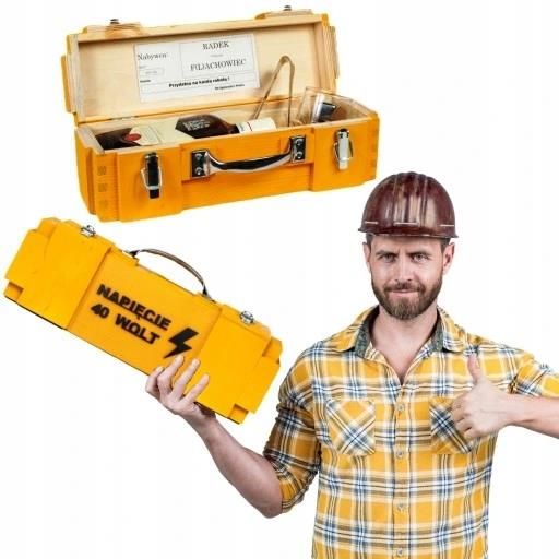 Skrzynka dla ELEKTRYKA prezent na 18-99 urodziny dla ELEKTRYKA MAJSTRA ZESTAW PREMIUM Skrzynka Napięcie 40 Wolt + szklanka + personalizowana naklejka z dedykacją – to świetny Zestaw dla każdego prawdziwego ELEKTRYKA z przymrużeniem oka , która do złudzenia przypomina kufer narzędziowy. Dlaczego …