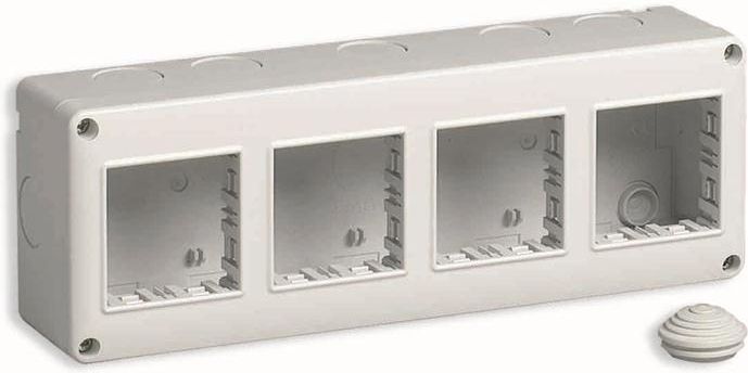 Obudowa IP40 8M (4x2) obudowa natynkowa IP40 dla seri Eikon i Plana 8 modułowa (4x2) moduły montowane poziomo lub pionowo Model. 14814 Dane techniczne: j. włoski j. angielski