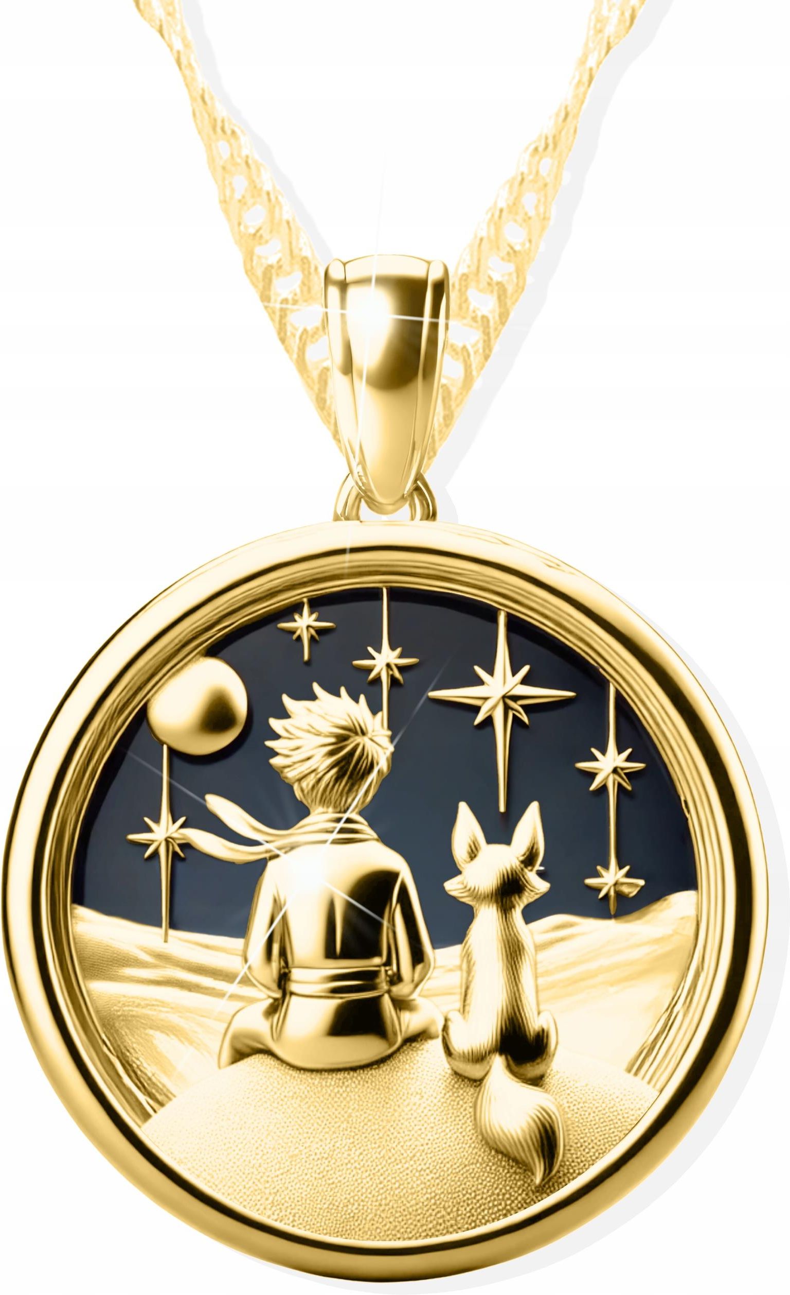 Złoty Naszyjnik Mały Książe Pozłacany 585 Chłopiec Lis i Kosmos Srebro 925 Czchów