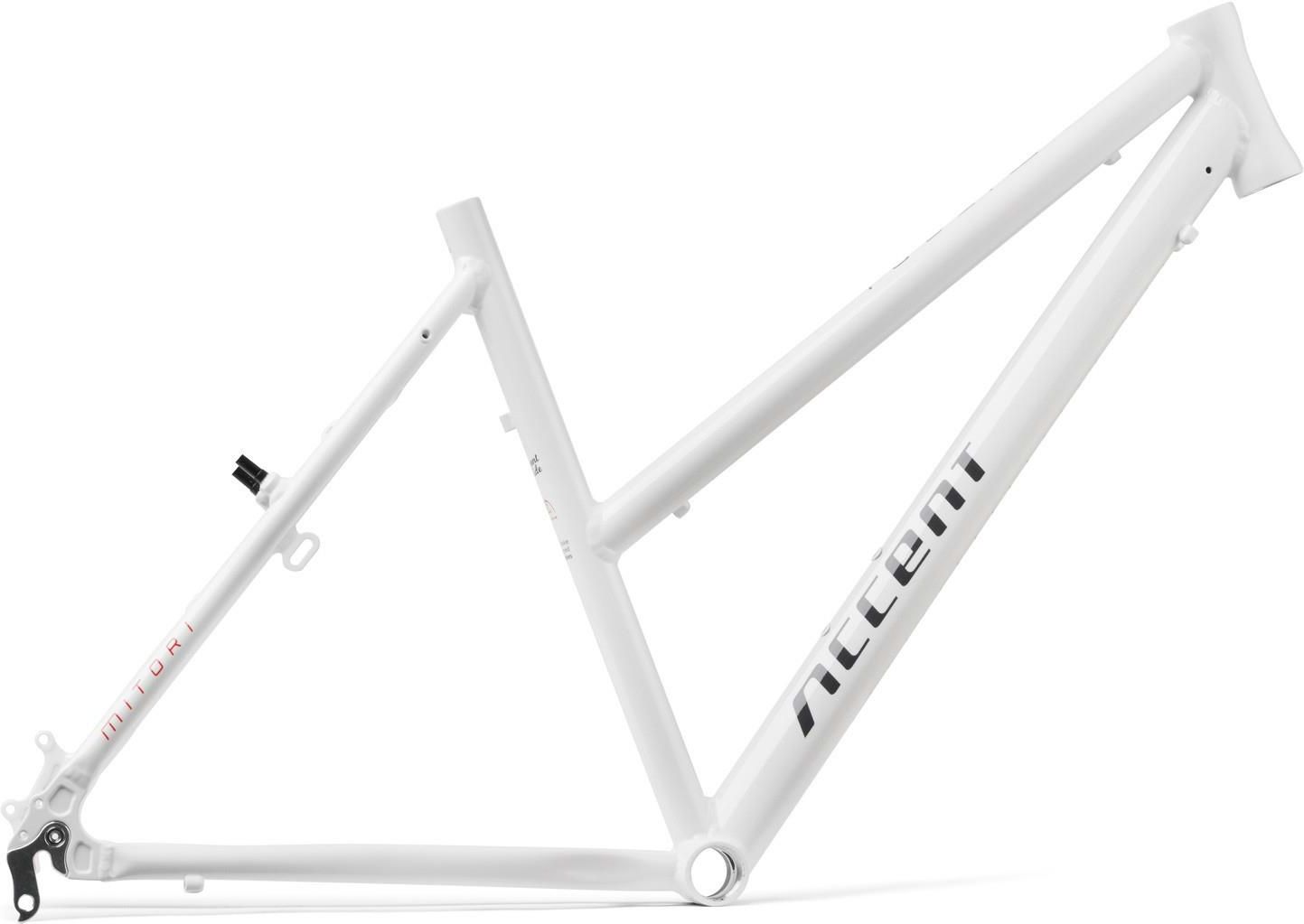 Rama Accent Mitori biało-szara ✅ Specyfikacja: Producent: Accent Model: Mitori Rozmiar: L - 19" Kolor: Biało-szary Przeznaczenie: Cross / Trekking Płeć: Damska Materiał: Aluminium 6061-T6 Rozmiar koła: 700c / 28" Suport: BSA Stery: Półzintegrowane Średnica sztycy: 27.2mm Obejma przedniej przerzutki: 31.8mm Standard piasty: QR 135mm Mocowanie hamulca: Pivoty V-brake, tarczowy IS Waga: ok. 1840g (dla rozmiaru M - 17") ✅ Opis: Accent Mitori to rama crossowo-trekkingowa przeznaczona dla kobiet lubiących długie wycieczki. Konstrukcja oferuje wygodną pozycję pozwalającą na komfortowe pokonywanie kolejnych kilometrów. Geometria została dostosowana do anatomii rowerzystek. Wykonanie ze stopu aluminium 6061-T6 pozwoliło osiągnąć niską wagę. Przeznaczona do zbudowania roweru na kołach 28" z hamulcami typu V-Brake lub tarczowymi w standardzie IS. Liczne otwory montażowe umożliwiają doposażenie o akcesoria takie jak bagażnik, błotniki lub dynamo. Klasyczne malowanie Accent Mitori z pewnością przypadnie do gustu wielu użytkowniczkom. Producent: Accent Symbol: R5915_L Kod producenta: 601-41-07_ACC