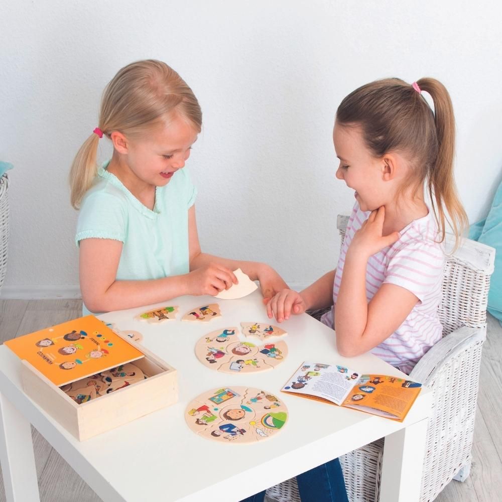 Dla kogo? Drewniane puzzle z serii Humanico to ukadanka zapoznajca dziecko z nastpujcymi uczuciami: radoci, smutkiem, zoci, zdziwieniem i strachem. To doskonay pomys na prezent dla dzieci powyej 3 roku ycia. Wymienione emocje towarzysz dziecku od najmodszych lat, dlatego tak wane jest, by je …