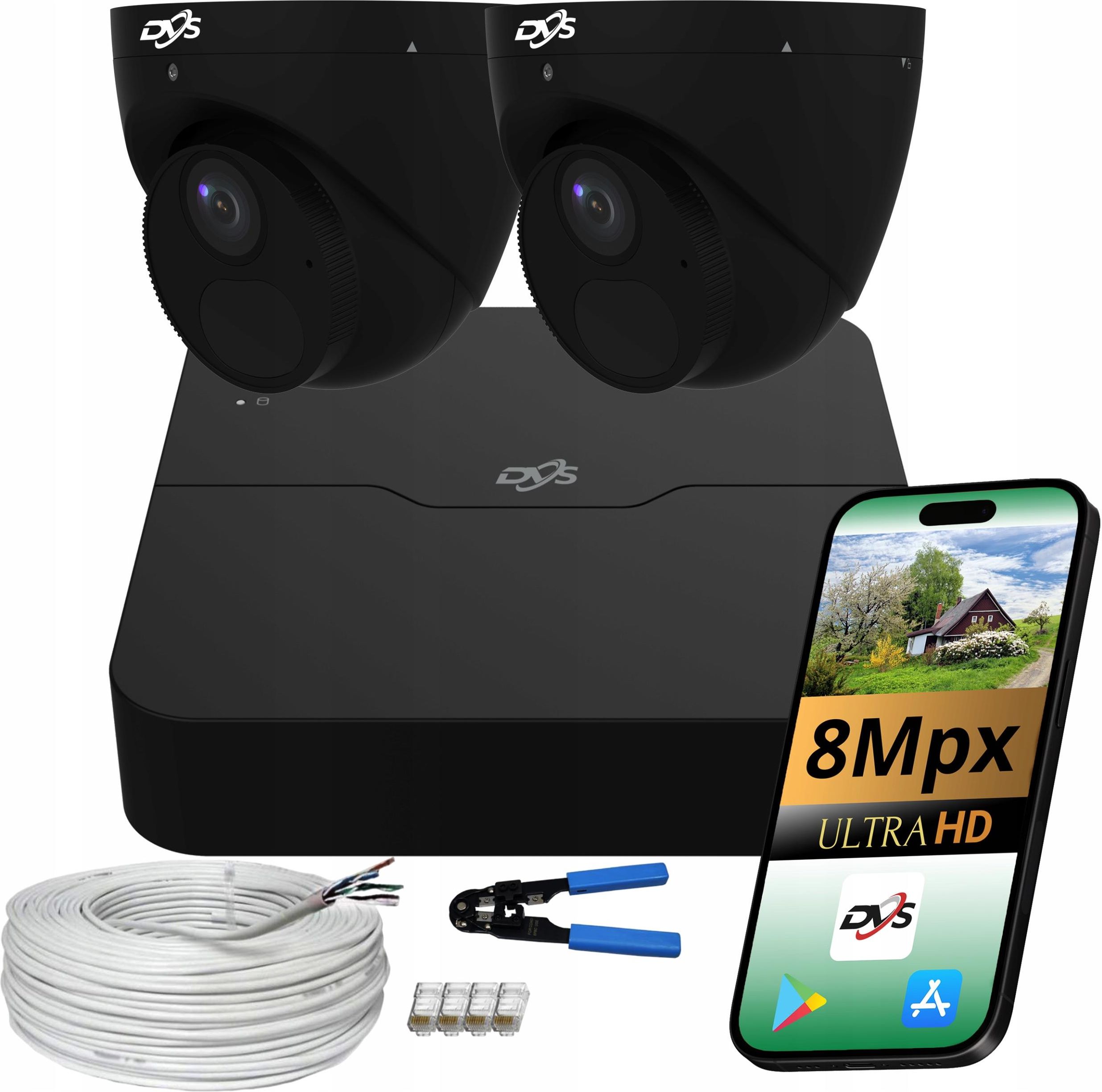 Dvs Zestaw Do Monitoringu 2 Kamery Kopułowe Czarne Z Mikrofonem 4K 8Mpx Czechowice-Dziedzice