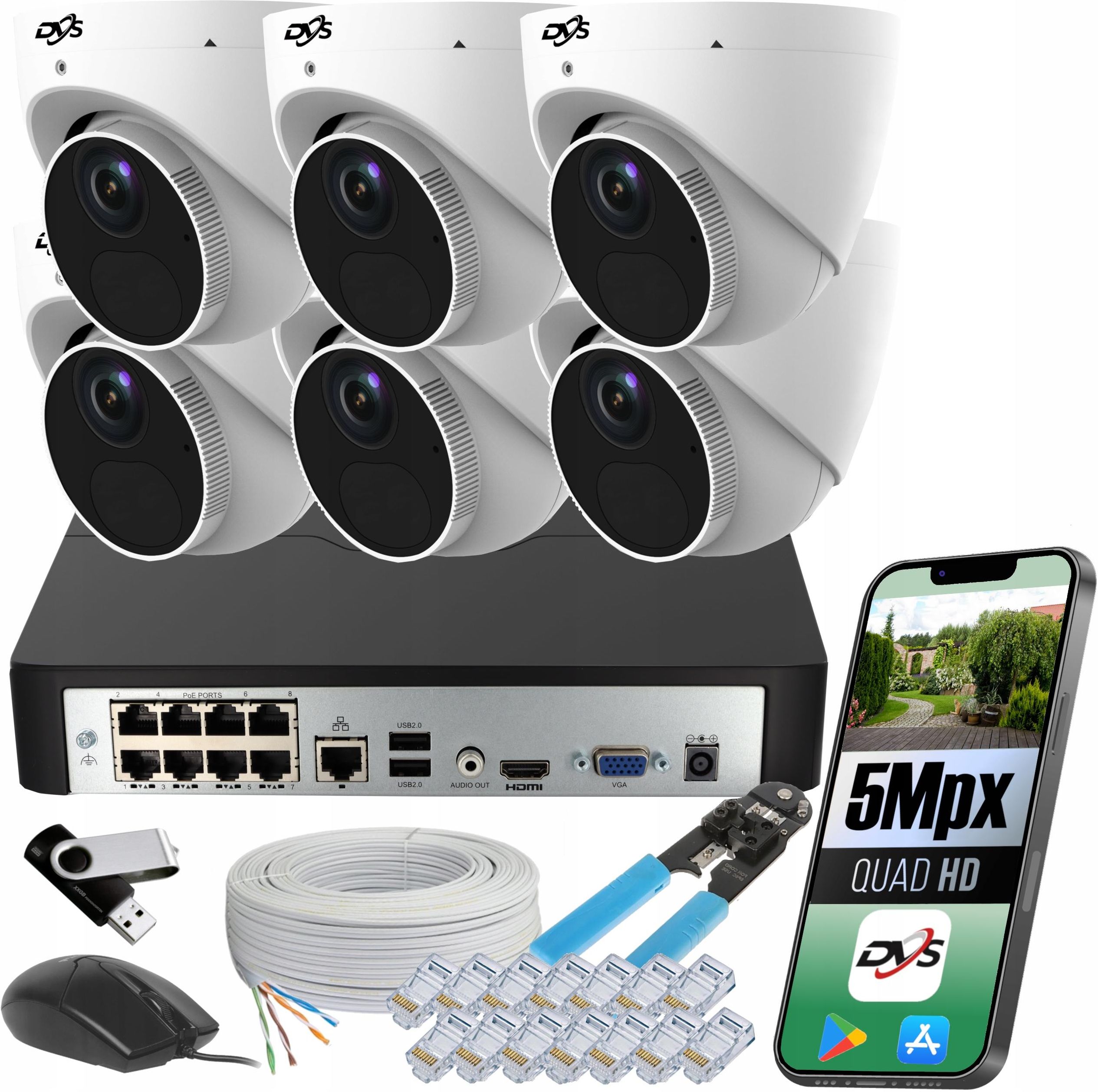 Dvs Zestaw Do Monitoringu 6 Zewnętrzne Kamery Poe Ip 5Mpx Kopułka Mikrofon Czechowice-Dziedzice