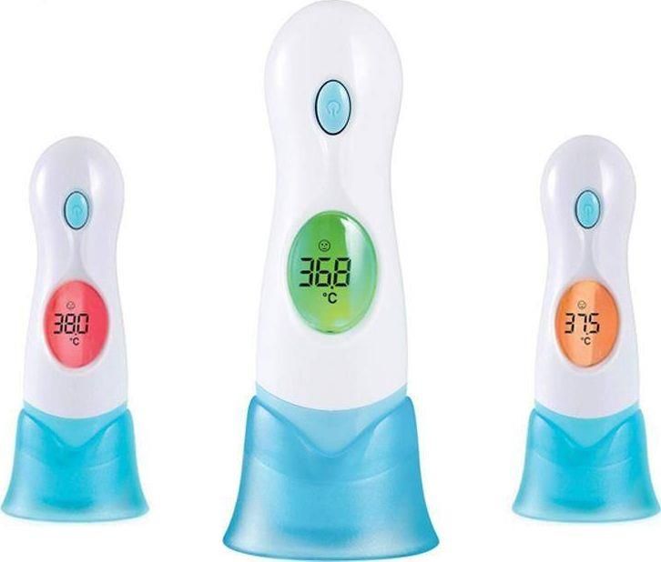 Elektroniczny termometr na podczerwień przeznaczony dla całej rodziny, a w szczególności do szybkiego pomiaru temperatury ciała u małych dzieci. Termometr na podczerwień to nowoczesne rozwiązanie dostępne na rynku termometrów! Zapewnia bardzo szybki, łatwy i dokładny pomiar temperatury ciała dzieci i dorosłych. Wyposażony w czytelny wyświetlacz LCD zmieniający kolor zależnie od poziomu temperatury. Z łatwością zmierzysz temperaturę dziecka podczas snu - bez niepotrzebnego stresu i płaczu. UWAGA: Produkt przeznaczony tylko i wyłącznie do użytku domowego! Cechy produktu Produktu fabrycznie nowy, wysokiej jakości. Można również mierzyć temperaturę przedmiotów. Ma kompaktowe wymiary i jest bardzo wygodny w użyciu. Umożliwia mierzenie temperatury na czole lub w uchu. Wyposażony w beeper sygnalizujący koniec pomiaru. Wbudowana funkcja pamięci ostatnich pomiarów Cechuje go bardzo wysoka czułość pomiaru +/- 0,1C. Wyposażony w czytelny wyświetlacz LCD, który zmienia kolor podświetlenia w zależności od zmierzonej temperatury ciała Posiada funkcję automatycznego wyłączania dla oszczędności baterii. Specyfikacja Materiał: tworzywo sztuczne Zasilanie: 1 bateria CR2032 (w zestawie) Zakres temperatury ciała: 32C° - 42C° Zakres temperatury obiektów: 0-100C° Czułość: 0,1 C° Pomiar w skali: °C, F Czas pomiaru: 1 sekunda Wyświetlacz LCD, podświetlany na różne kolory w zależności od zmierzonej temperatury Funkcja pomiaru temperatury otoczenia. Wbudowany zegarek Automatyczny wyłącznik i wskaźnik niskiego stanu baterii Pamięć ostatnich pomiarów Kolor: biało-niebieski Wymiary: 117 mm x 48 mm x 35 mm Opakowanie: kolorowe, estetyczne pudełko
