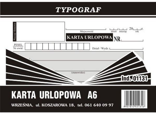 Typograf Druk Karta Urlopowa A6 01131 Czechowice-Dziedzice