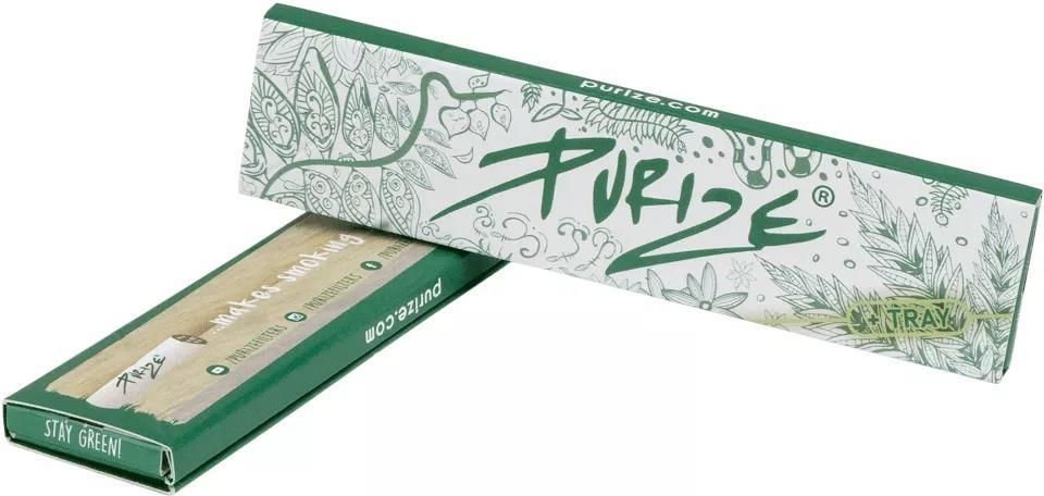 Bibułki z tacką Purize Papes'n Tray brązowe Unikatowy zestaw Purize Papes'n Tray. Brązowe bibułki KS Slim Brown w opakowaniu z rozkładaną tacką. Bibułki Purize cechują się ultra-cienką gramaturą oraz wolnym spalaniem. Wykonane są z naturalnych włókien roslinnych, bez chloru.