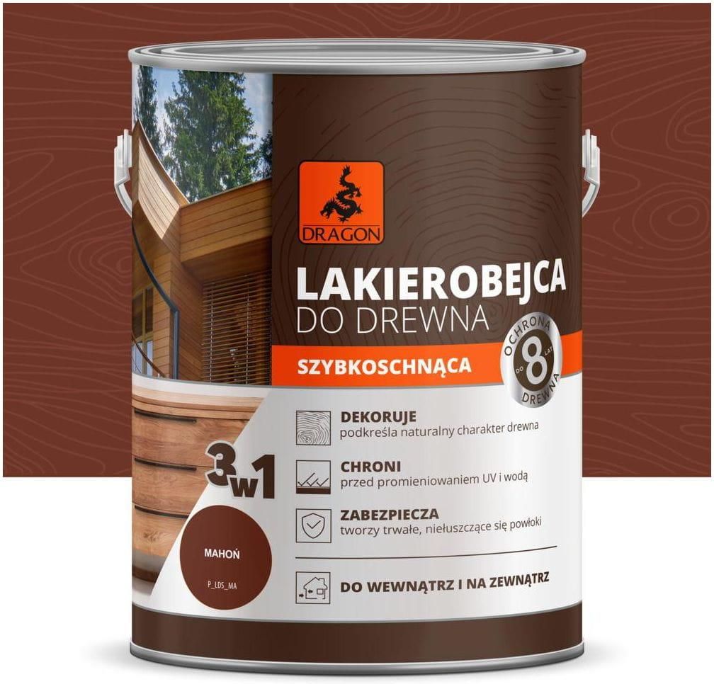 LAKIEROBEJCA DO DREWNA SZYBKOSCHNĄCA Dragon 9 KOLORÓW Szybkoschnąca Lakierobejca Dragon to wysokiej jakości produkt ochronno – dekoracyjny do zabezpieczenia drewna zarówno wewnątrz pomieszczeń jak i na zewnątrz. Dzięki zaawansowanej formule 3 w 1 idealnie sprawdzi się jako produkt, który impregnuje …
