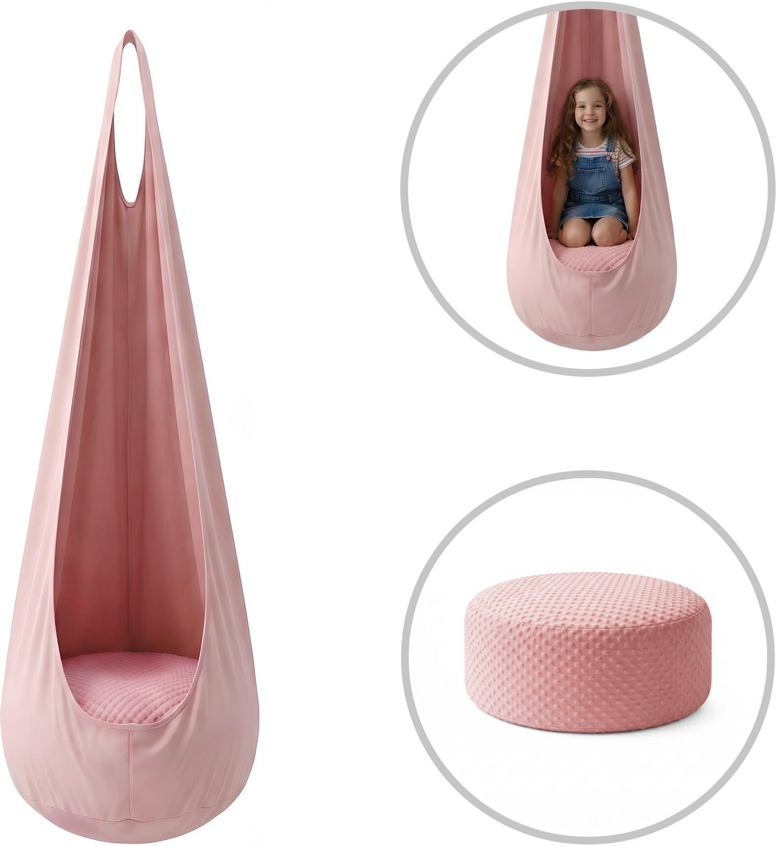 Huśtawka Kokon Sattelite - Różowy Marka:Małpiszon Opis produktu Huśtawka kokon SatteliteHuśtawka Satellite to coś więcej niż zwykłe siedzisko. To mały świat spokoju, kreatywności i zabawy w jednym. Kiedy dziecko siada w środku, świat staje się trochę cichszy, a em Cechy kluczowe Sprzęt sportowy dla dzieci Place zabaw dla dzieci Specyfikacja Przeznaczenie:Gimnastyka rekreacyjna Rozmiar:Uniwersalny