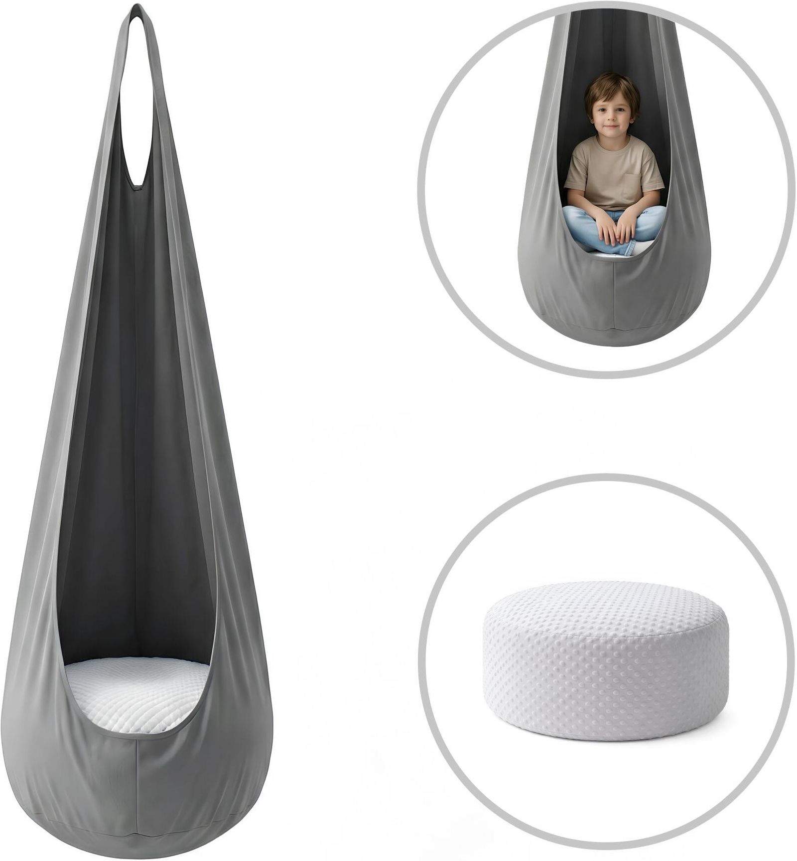 Huśtawka Kokon Sattelite - Szary Marka:Małpiszon Opis produktu Huśtawka kokon SatelliteHuśtawka Satellite to coś więcej niż zwykłe siedzisko. To mały świat spokoju, kreatywności i zabawy w jednym. Kiedy dziecko siada w środku, świat staje się trochę cichszy, a em Cechy kluczowe Sprzęt sportowy dla dzieci Place zabaw dla dzieci Specyfikacja Przeznaczenie:Gimnastyka rekreacyjna Rozmiar:Uniwersalny