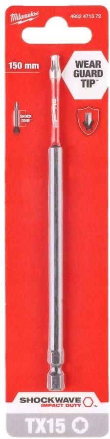 JESZCZE WYŻSZA TRWAŁOŚĆ I LEPSZE DOPASOWANIE  BITY UDAROWE SHOCKWAVE™   Bity udarowe MILWAUKEE® SHOCKWAVE™ IMPACT DUTY to najtrwalsze bity na rynku zapewniające idealne dopasowanie. Hartowanie punktowe końcówki zapewnia większa odporność na zużycie i idealne dopasowanie do łba wkrętu. Unikalna strefa SHOCK ZONE® absorbuje udar i zapewnia do 30x dłuższą żywotność w porównaniu z innymi bitami udarowymi dostępnymi na rynku oraz jest w stanie przenieść aż do 3x większy moment skręcający. Specjalnie opracowany stop stali ALLOY76™ poddany dodatkowej obróbce termicznej zapewnia maksymalną odporność na uszkodzenia. Bity udarowe SHOCKWAVE™ gwarantują ekstremalną trwałość nawet przy najbardziej wymagających zastosowaniach. Shockwave TX15 x 150 mm - 1 pc Zaprojektowane do użytku z wkrętarkami udarowymi, akcesoria z linii Shockwave Impact Duty™ nie tylko są idealne do zastosowań przy dużych obciążeniach, ale także zapewniają kompletne rozwiązanie dla wszystkich użytkowników, którzy chcą wiercić i mocować. Geometria Shock Zone - zaprojektowana tak, by była elastyczna. Geometria Shock Zone zmniejsza naprężenie na ostrzu, dzięki czemu ono rzadziej łamie się. Połączenie konstrukcji Shock Zone oraz specjalnej obróbki cieplna pochłania udary i pozwala aby wiertło zginało się podobnie jak sprężyna. Kute i prasowane ostrze zapewnia najlepsze dopasowanie do łba śruby, bez przeskoku i zdzierania go, co wydłuża okres trwałości. Stal opracowana na życzenie - Milwaukee ® niestandardowy skład metalu sprawia, że wiertła Shockwave są bardziej odporne na wstrząsy przy uderzeniu. -----------------------------------