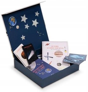 Odkryj cuda kosmosu! W tym edukacyjnym pudełku dzieci znajdą wszystko, czego potrzebują, aby podróżować z Ziemi na inne planety: Merkury, Wenus, Mars... Zestaw zawiera aż 75 akcesoriów, które pomogą zrozumieć zjawiska wszechświata: karty astronomiczne, konstelacje, karty 3D, zeszyt ćwiczeń… Idealny prezent dla miłośników kosmosu. Zestaw zawiera: 1 zeszyt ćwiczeń, 16 kart astronomii, 1 ulotka o Księżycu, 5kart 3D z okularami, 10 obrazów konstelacji, 30 gwiazd do zawieszenia, 1 mapa nieba, 1 plakat Układu Słonecznego oraz 8 planet wraz ze Słońcem do zawieszenia Wiek +6 lat Wymiary opakowania: 22 x 20,5 cm Francuska firma Moulin Roty oferuje oryginalne, inspirowane stylem retro zabawki dla dzieci. Twórcy marki pragną by ich dzieła poprzez zabawę wpływały na rozwój i kreatywność dzieci. Dążą do tego, by zabawki były postaciami z osobowością i duszą. Markę wyróżnia bardzo wysoka jakość, a niezwykle miękkie materiały maskotek i przytulanek, sprawiają, że zabawki stają się wspaniałymi towarzyszami już od narodzin dziecka. Wszystkie produkty tworzone są w oparciu o styl z dawnych lat oraz precyzyjne wykonane tak, by zaspokoiły gusta dzieci oraz wymagających rodziców.
