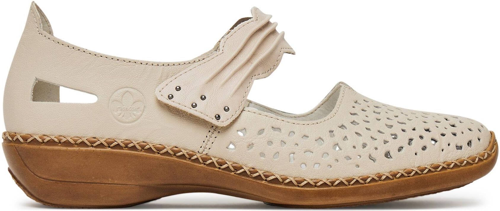 Baleriny marki Rieker to idealna propozycja dla kobiet ceniących połączenie elegancji i komfortu. Wykonane z wysokiej jakości skóry, zachwycają beżowym kolorem, który doskonale komponuje się z wieloma stylizacjami. Dzięki zapięciu na rzep, buty są łatwe do założenia i idealnie dopasowują się do stopy. Technologia Rieker Antistress zapewnia wyjątkowy komfort noszenia, amortyzując wstrząsy i redukując zmęczenie stóp. Te baleriny to doskonały wybór na co dzień i na specjalne okazje, gwarantując wygodę i styl przez cały dzień. Idealne do każdej garderoby!