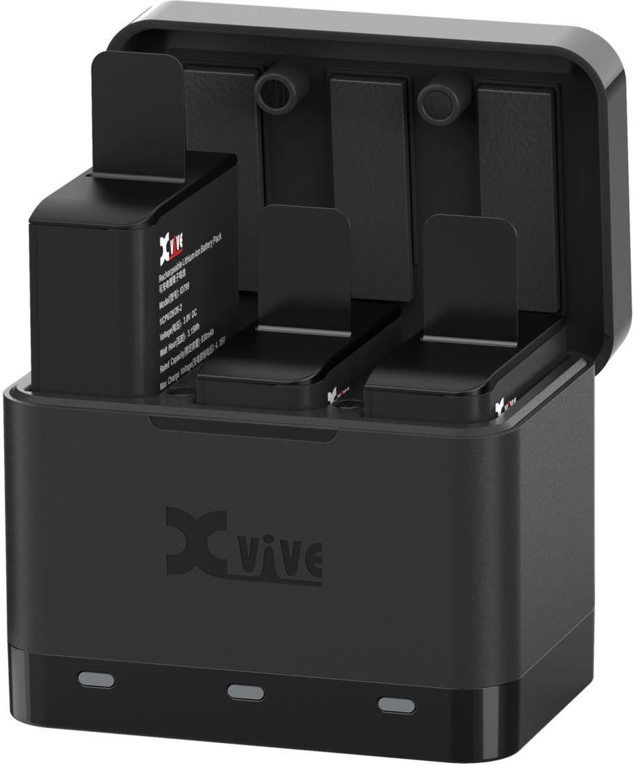 XVive U5C Battery Charger Case with 3x Rechargeable Li-Ion Batteries - ładowarka oraz 3 ładowalne baterie litowo-jonowe dla urządzenia XVive U5 Wireless Audio System- ładuje 3 baterie jednocześnie- oddzielna dioda LED pokazuje status naładowania każdej baterii- ładowanie baterii od 0% do 100% w 2 godziny- zasilanie za pomocą gniazda Micro-USB (5V, 2A)- wymiary (D x S x W) 55 x 40 x 38 mm- waga 119 g- zestaw zawiera 1x ładowarkę w futerale, 3x baterie litowo-jonowe, 1x kabel USB (USB typu-A na Micro-USB)