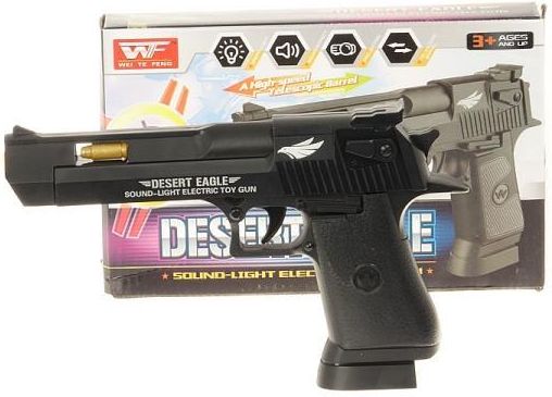 pistolet na baterie, światło, dźwięk, wibracje; 22,5x14,5x4cm, Box Wymiary: 229x151 mm Opakowanie: pudełko