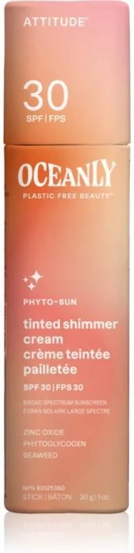 Attitude Oceanly Plastic Free Beauty tonujący krem nawilżający z błyszczącymi cząsteczkami SPF 30 30g Czempiń