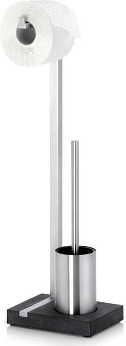 Stojak na papier toaletowy i szczotkę (stal matowa) Menoto Blomus Podstawowe informacje Producent: Blomus Kod produktu: B68687 Kolor: srebrny Materiał: stal nierdzewna Wymiary: 64,5 x 20 x 15 cm (wys. x szer. x gł.) Pojemność: • Zestaw łazienkowy zapewniający potrzebne rzeczy pod ręką. • Nie wymaga wiercenia otworów w ścianach. • Neutralne kolory - pasuje do wielu łazienek. Jeśli Twoja łazienka pozwala na ustawienie wolnostojącego dodatku, zwróć uwagę na zestaw marki Blomus. Jest to stojak z kolekcji Menoto, który łączy uchwyt na papier toaletowy oraz pojemnik ze szczotką do toalety (w komplecie). 2w1: najpotrzebniejsze przedmioty ustawisz koło wc i nie musisz wiercić dodatkowych dziur w ścianie na montaż. Stojak prezentuje się bardzo elegancko, ponieważ wykonany jest ze stali nierdzewnej w matowym wykończeniu. Całość umieszczono na stabilnej podstawce z polystonu – materiału o ciemnej barwie przypominającego kamień.