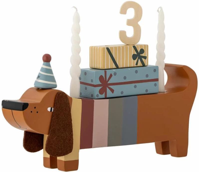Szczegóły produktu: Jest świątecznym i przytulnym elementem na dziecięce przyjęcie urodzinowe Wykonana z drewna lotosu z certyfikatem FSC Dekoracja przedstawia wiernego psa Charliego Miejsce na dwie świeczki i cyfry od 0 do 9 W uroczym pudełku prezentowym Materiał i pielęgnacja: Materiał: FSC®100%, Lotos Wymiary i waga: Wymiary (dł. x wys. x szer.): 28 x 14 x 5 cm Dostawa obejmuje: 1 x dekoracja urodzinowa Uwaga: dekoracja i świeczki nie wchodzą w zakres dostawy.