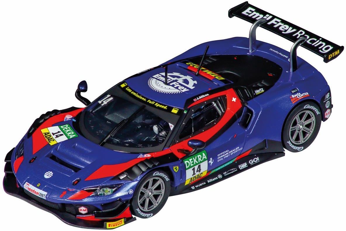 Samochody wyścigowe CARRERA DIGITAL 132Samochody serii DIGITAL 132 wykonane zostały w skali 1:32. Posiadają niesamowite osiągi: rzeczywiste przyspieszenia i hamowania. Większość wyposażona jest w działające przednie i tylne światła. Seria DIGITAL 132 to samochody cyfrowo kontrolowane i indywidualnie kodowane, co umożliwia jednoczesne poruszanie się aż 6 aut na jednym torze jazdy (w jednym rowku). Wysokiej klasy, oryginalne wyścigówki zostały wyprodukowane w technice tampodruku z ogromną dbałością o szczegóły. Wszystkie samochody tej serii przemieszczają się na specjalnie skonstruowanych prowadnicach, mocowanych do zawieszenia. Samochód Ferrari 296 GT3 "Emil Frey Racing, nr 14", DTM 32000 wyposażony został w przednie oświetlenie ksenonowe i światła tylne.