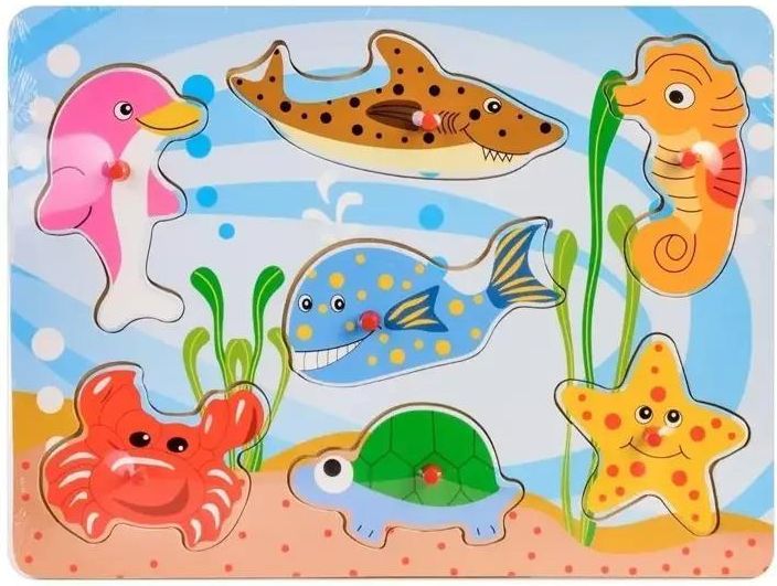 Drewniana układanka z motywem zwierząt morskich dla dzieci Zaprezentuj swojemu dziecku tę wspaniałą drewnianą układankę z sympatycznymi zwierzętami morskim, dzięki której maluch będzie mógł rozwijać swoją spostrzegawczość oraz koordynację wzrokowo-ruchową już od 18. miesiąca życia. Wskutek obecności praktycznych uchwytów, zabawka umożliwia łatwe przenoszenie poszczególnych elementów, a dziecko może bawić się nią z jeszcze większą swobodą i frajdą. Produkt spełnia wszelkie normy bezpieczeństwa, co potwierdza posiadany certyfikat CE. Ciesz się zabawą z Twoim maluchem, obserwując jego pierwsze kroki w odkrywaniu fascynującego świata zwierząt morskich i jednocześnie wspomagając jego rozwój dzięki prostej, ale efektywnej układance! EAN: 5905422041066