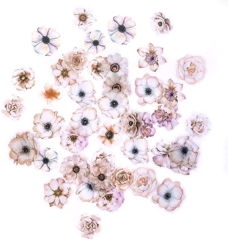 Naklejki z wysokiej jakości transparentnej folii PET z motywami kwiatowymi w delikatnych pastelowych odcieniach beży i jasnego różu to absolutny must have każdego twórcy Trwałe i wodoodporne, odporne na blaknięcie i uszkodzenia Idealne do dekorowania prac scrapbooking, albumów kartek, dzienników, …
