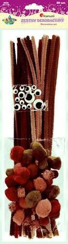 Druciki i pompony 80szt. tonacja brązowa 352526 Zestaw oczek, drucików i pomponów w tonacji brązowej. Doskonale nadaje się do wszelkiego rodzaju dziecięcej aktywności twórczej - tworzenia postaci, zwierząt, stworków itp. Świetnie sprawdzają się również w projektach kreatywnych, takich jak kartki …