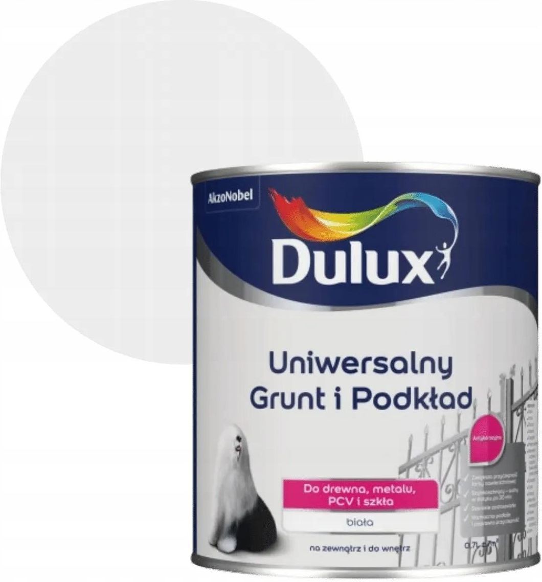 Dulux Uniwersalny Grunt I Podkład Antykorozyjnydo Metalu Drewna 0,7L Biały Czempiń