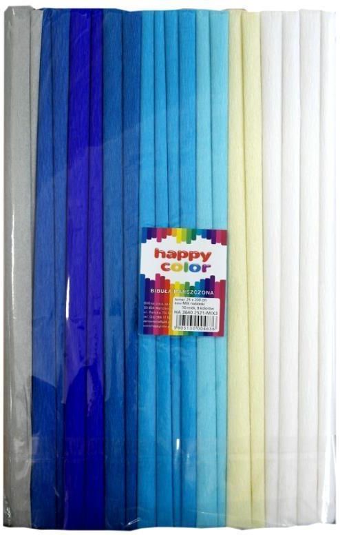 Bibuła Marszczona Happy Color w Odcieniach Niebieskiego Dekoracyjna bibuła marszczona z serii Happy Color dostępna jest w 10-cio rolkowym zestawie. Prezentowany mix zawiera 8 różnych odcieni niebieskiego. Każda z rolek ma wymiary 25x200cm, umożliwiając tworzenie najróżniejszych dekoracji i prac plastycznych. Produkt ten zapewnia kreatywne wykorzystanie nie tylko w domu, ale również w szkołach czy przedszkolach. Prosta w użyciu, ożywi każde pomieszczenie swoimi intensywnymi barwami. EAN: 5905130004636