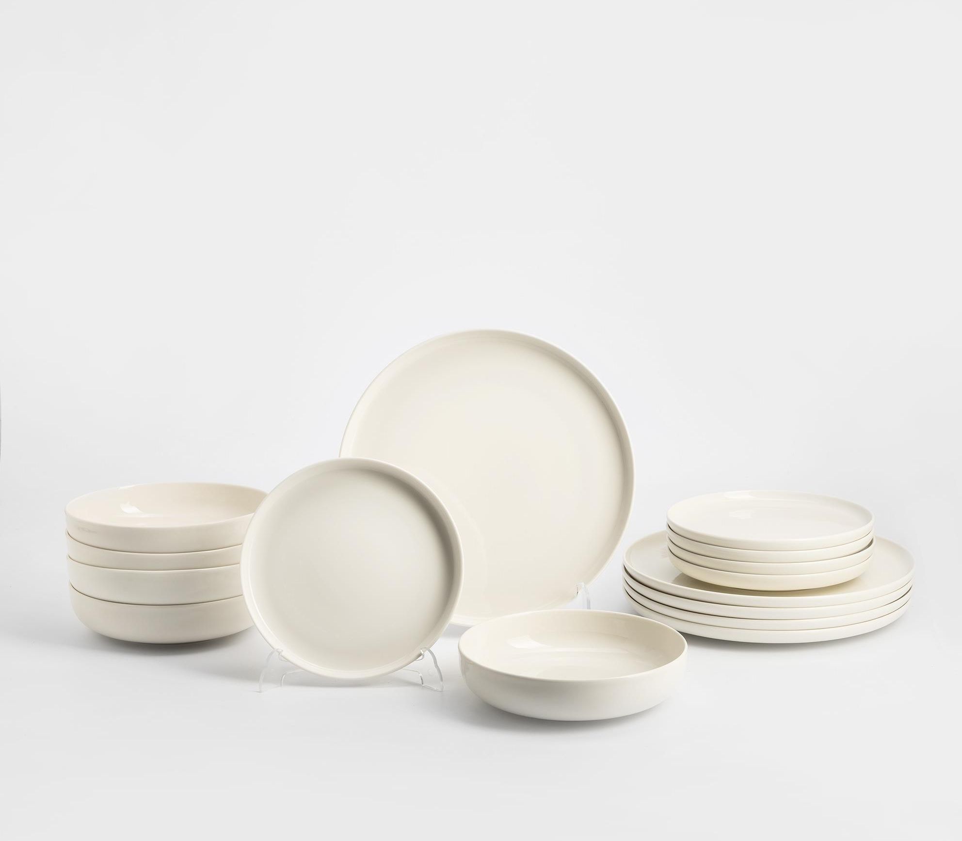Jeśli marzysz o zastawie, która sprawi, że każdy posiłek nabierze wyjątkowego charakteru, komplet talerzy FLOW NEW spełni Twoje oczekiwania. Nadaj swojemu stołowi wyjątkowy charakter z zestawem FLOW NEW i ciesz się porcelaną, która zachwyca każdego dnia. Komplet 18 elementów (6 talerzy obiadowych, 6 deserowych, 6 głębokich) - pełne nakrycie stołu dla sześciu osób. Porcelana w odcieniu ivory (kość słoniowa) - naturalny, szlachetny kolor powstały w masie, dzięki czemu kubki zachowują swój odcień nawet po wielu myciach.