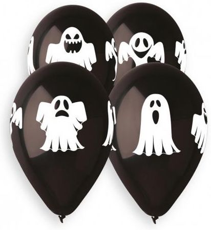 Zestaw balonów z motywem duchów. Kolor: czarny. 5 sztuk w 1 opakowaniu. Wymiary: ok. 13 cali (33 cm) Do napełnienia powietrzem lub helem.