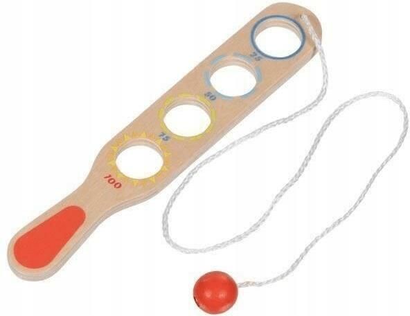 Uniwersalna zabawa w domu i na dworze! Gra zręcznościowa łapanie piłeczki Goki to prosty, a zarazem ekscytujący pomysł na konkursy pełne zdrowiej rywalizacji! Zasady gry w łapanie piłeczki są niezwykle proste: gracz podrzuca czerwoną piłeczkę połączoną sznurkiem z paletką. Drewniana paletka posiada okrągłe otwory, w które powinna wpaść piłeczka. W zależności od tego, do której luki wpadnie piłka, uczestnik zabawy może zdobyć 25, 50, 75 lub rozbić bank i ustrzelić aż 100 punktów. Gra zręcznościowa dla dzieci łapanie piłeczki Goki wykorzystuje motyw znanej i lubianej przez następne pokolenia zabawy. Wyzwanie można podjąć z przyjaciółmi lub rodziną. Mnóstwo śmiechu gwarantowane! Najważniejsze zalety produktu: gra zręcznościowa do domu lub ogrodu, zabawa dla całej rodziny, wyzwanie, które wymaga precyzji, koncentracji oraz nieco szczęścia, drewniana paletka typu tarcza, dużo drewna w naturalnym odcieniu, wytrzymałość materiałów przyjaznych środowisku, nauka podstaw liczenia, do użytku domowego lub do zabaw na świeżym powietrzu, renomowany producent, świetna cena. Wymiary paletki do gry zręcznościowej łapanie piłeczki Goki: 19,5 cm