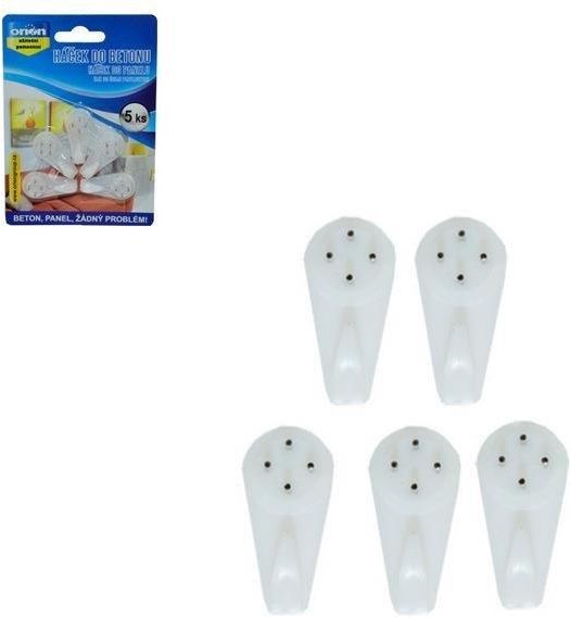 WYTRZYMAŁE - Zestaw 5 sztuk haczyków z metalowymi, hartowanymi kolcami. Każdy z haczyków ma wymiar 3 x 1 cm. PRZYDATNE - Sprawdzą się przy wieszaniu obrazów czy zdjęć na ścianach. Haczyki są bardzo przydatne w każdym domu. DOBRE TRZYMANIE - Odpowiednie do montażu w betonie i drewnie. ŁATWY MONTAŻ - Haczyk zamontujemy w łatwy sposób, bez konieczności wiercenia dziur w ścianach. KLASYCZNY DESIGN - Ich uniwersalny wygląd będzie idealnie pasował do każdego wnętrza. Zestaw pięciu haczyków z metalowymi, hartowanymi kolcami. Haczyki są przydatne w każdym domu. Możemy wykorzystać je do wieszania obrazów, plakatów czy zdjęć na ścianie. Uniwersalny wygląd haczyka sprawi, że będzie pasował do każdego wnętrza. Oryginalny produkt czeskiej marki Orion. Wyprodukowano zgodnie z europejskimi standardami.