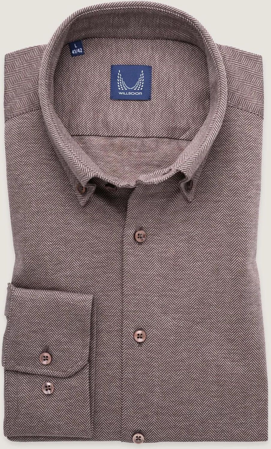 Jasnobrązowa, klasyczna koszula w jodełkę z podpinanym kołnierzykiem, tkanina dzianinowa ze 100% bawełny