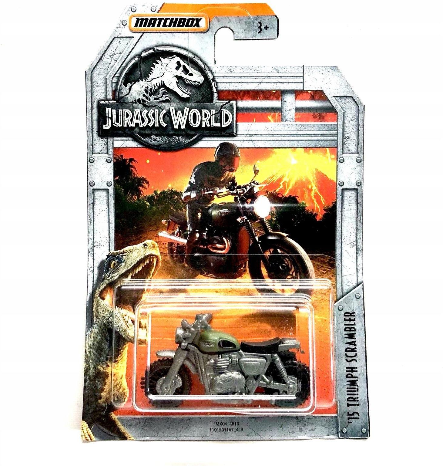 Mattel MATCHBOX JURASSIC WORLD TRIUMPH SCRAMBLER FMW90/FMX04 Nowy zestaw popularnych samochodzików Matchbox od firmy Mattel nawiązuje do różnych części filmowej serii Jurassic World, w tym do najświeższej produkcji Upadek królestwa.Pojazdy są wykonane w skali 1:64. Wiek dziecka: 3 + Wymiary …