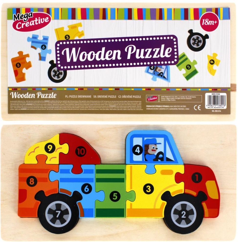 Układanka drewniana Auto 10 elementów od MEGA CREATIVE - bezpieczna i edukacyjna zabawa Układanka Auto z 10 elementami od renomowanej firmy MEGA CREATIVE to doskonała zabawka dla dzieci powyżej 18 miesięcy życia, która rozwija ich zdolności manualne, wyobraźnię oraz koncentrację. Wykonana w całości z wysokiej jakości drewna, posiada nietoksyczne elementy, które sprawiają, że staje się ona bezpieczną alternatywą dla swoich plastikowych odpowiedników. Dzięki zabawie z drewnianą układanką Auto, maluch uczy się nie tylko dopasowywania odpowiednich kształtów, ale także doskonali swoją pamięć, koordynację wzrokowo-ruchową oraz wyobraźnię przestrzenną. Każdy z pięknie kolorowych elementów jest ponumerowany, co sprawia, że dziecko z jeszcze większą przyjemnością podejmuje się zadania ułożenia puzzle-układanki. Opakowana w folię, drewniana układanka Auto staje się również doskonałym pomysłem na prezent dla małego miłośnika motoryzacji. Będąc nie tylko źródłem rozrywki, pozwala także na edukacyjną zabawę, która wspiera rozwój dzieci na wielu płaszczyznach. Daj swojemu dziecku najlepsze narzędzia do nauki i zabawy – wybierz układankę drewnianą Auto od MEGA CREATIVE! EAN: 5908275138013