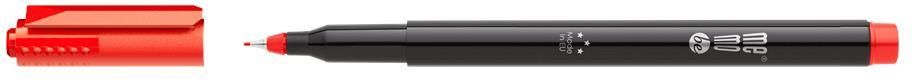 Marker permanentny OHP MemoBe MM250 końcówka S 0,3 mm czerwony Marker permanentny OHP MemoBe z tuszem w kolorze czerwonym i okrągłą końcówką w rozmiarze 0,3 mm. Przeznaczony do trwałego znakowania i dekorowania prawie wszystkich powierzchni, jak np: folii, płyt CD/DVD, szkła, plastiku, metalu, drewna, papieru itd. Wodoodporny i szybkoschnący, a także nieścieralny tusz na bazie alkoholu. Obudowa markera wykonana w 30% z tworzyw z recyklingu. Wyposażony w wentylowaną skuwkę zgodną z normą ISO 11540:1993. Dostępny w 4 kolorach: czarnym, czerwonym, niebieskim, zielonym. Wyprodukowany w Europie. Dostarczany w opakowaniu 10 szt. MM250-05