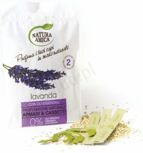 Natura Amica saszetki zapachowe do szafy 2 szt (opakowanie 2szt) Uwalniają zapach przez 6 tygodni. Saszetki zapachowe Natura Amica są zainspirowane kolekcją długo utrzymującego się zapachu lawendy. Dzięki tym saszetkom twoje ubrania pozostaną na długo świeże i pachnące. Zapach uwalniany jest stopniowo przez 6 tygodni. Zapach: Lawenda. Sposób użycia: * zawiesić saszetki w szafie na załączonych do opakowania haczykach* włożyć saszetki do szuflady nie przykrywając ich ubraniami* wymieniać saszetki co 6 tygodni Kup teraz i sprawdź jak długo pachną saszetki Natura Amica
