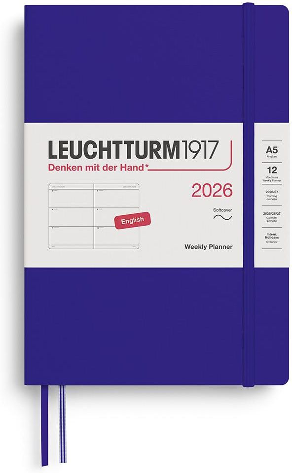 PLANER TYGODNIOWY POZIOMY LEUCHTTURM1917 W MIĘKKIEJ OPRAWIE MEDIUM (A5) 2026 INK Czempiń