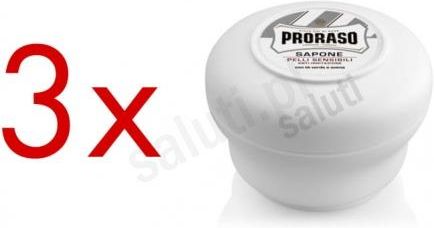 Proraso Sapone da Barba Pelli Sensibili (3 x 150 g) Powstała w 1926 roku firma Proraso zyskała renomę najlepszego włoskiego producenta kosmetyków do golenia. Ponad 80 lat tradycji, pilnie strzeżone receptury oraz otwarcie na nowe rozwiązania, zapewniają najwyższą jakość golenia. Przekłada się to na zadowolenie klientów na całym świecie. Biała linia Proraso została stworzona specjalnie do golenia delikatnej skóry. Produkt zawiera glicerynę oraz wyciągi z aloesu i zielonej herbaty, które odpowiadają za jego właściwości chłodząco-kojące.