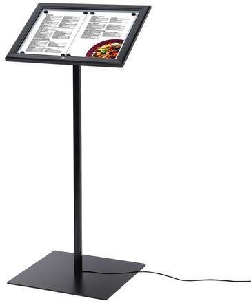 Stojak informacyjny z gablotą Menuboard, czarny, oświetlenie LED Czempiń